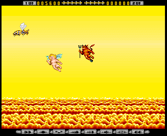 After destroying the caterpillar at the end of the very first stage, a little angel floats out of the body and hovers about for a few seconds. Collecting it will take you here. Basically, you fly along, collecting the angels and avoiding the demons.