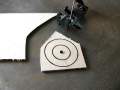 At this angle, you can see the edge that holds the small concave lens. The material is 1/4" Foam PVC that I got from TAP Plastics. It's very light, strong, and works easily. |