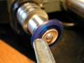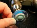 Now a Gouge tool is used to shape the plastic. The outer edge is rounded, then made thinner as it goes inward. The inner edge is thin enough to make a visible contrast with the outer rim, for a jewel-like appearance that really catches the light. |