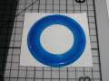 The inner circle is only cut part-way through. The outer one is cut completely, to make a smooth edge. Remove the paper from the back side of the plastic and put a light behind it, so you can use the brightness as a guide. |