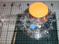 Here the small lens has been mounted with clear cement around the outer edge. This will be the pupil of the finished eye. These lenses were obtained from Edmund Scientific for a few dollars each. |