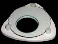 Nylon screws and posts complete the mounting for the large convex lens. The wearer gets a clear, bright, wide angle view through the two lens combination. Think of it as a very short telescope. |