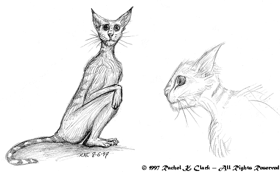 Cute little drawing of a critter that combines vaguely human characteristics with those of a feline. -- April 24, 2000