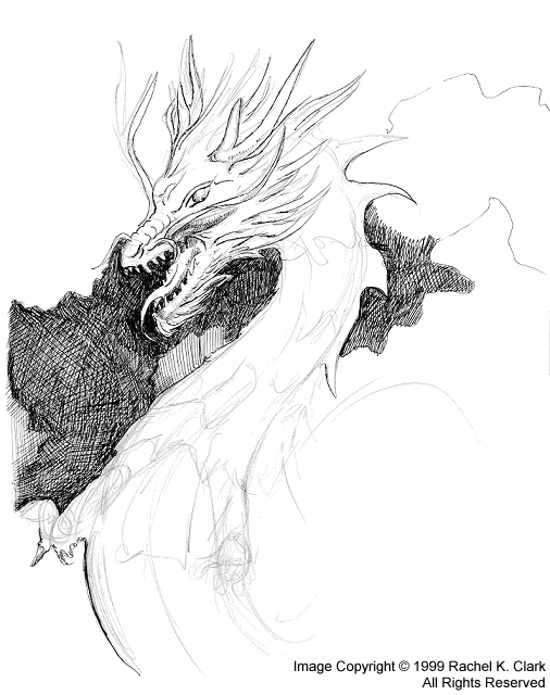 In case you didn't know, lung is what Oriental dragons are often called back home. (And you don't say it like the name of a breathing mechanism, but more like luung.) I never did much with this drawing, but what's there is pretty cool. -- April 24, 2000