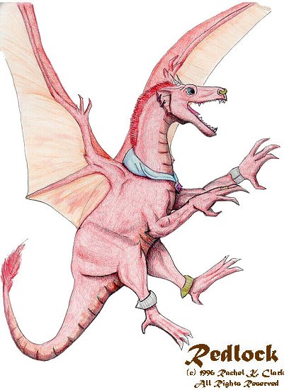 Remember this guy? He used to be on the main TRS page (where the gryphon is now). Redlock is Phoenix's (see above) beau and the brother of Tabrian (also see above), and, like both, an avian-draconoid gargoyle. The overall design of Redlock's character shows its age but still has some interesting possibilities. With modernization and a few slight modifications, Redlock would almost look like a Star Wars alien -- don't you think? -- April 24, 2000